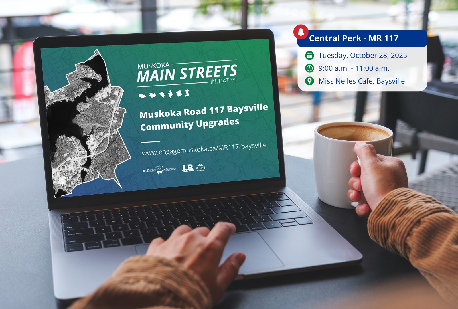 Join us for a relaxed, drop-in style coffee chat about the work being done with the Muskoka Road 117 Main Streets project in Baysville. No presentations, no pressure — just a chance to ask questions, learn more, and connect with District staff.