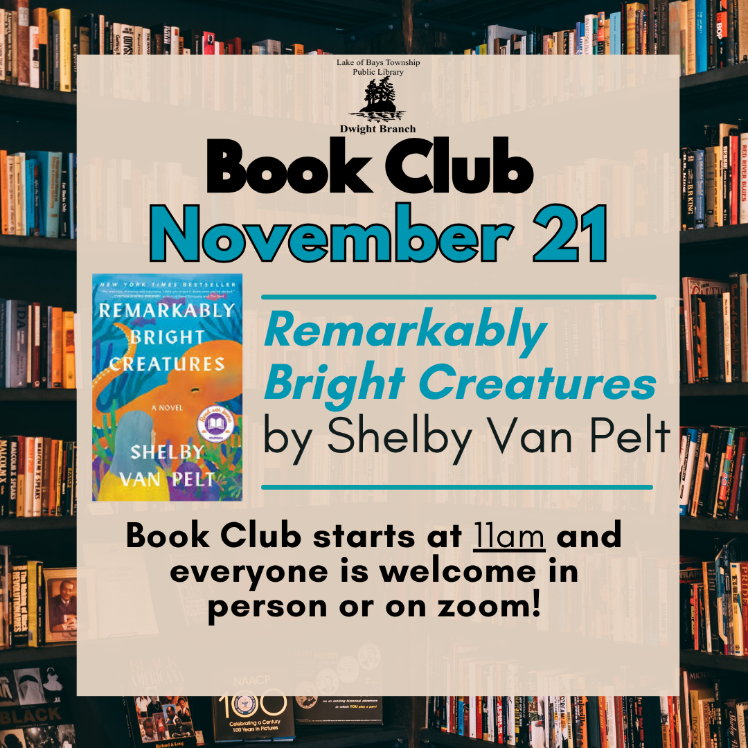 This month the group will read Remarkably Bright Creatures by Shelby Van Pelt.